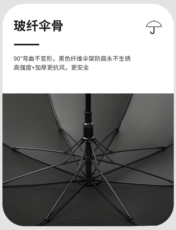 【骨架】:23寸x8k自動加厚鋁中棒全纖維傘架