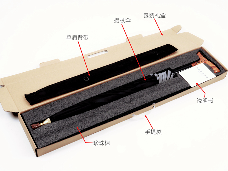 【骨架】:23寸x8k自動加厚鋁中棒全纖維傘架(拐棍可分離使用)