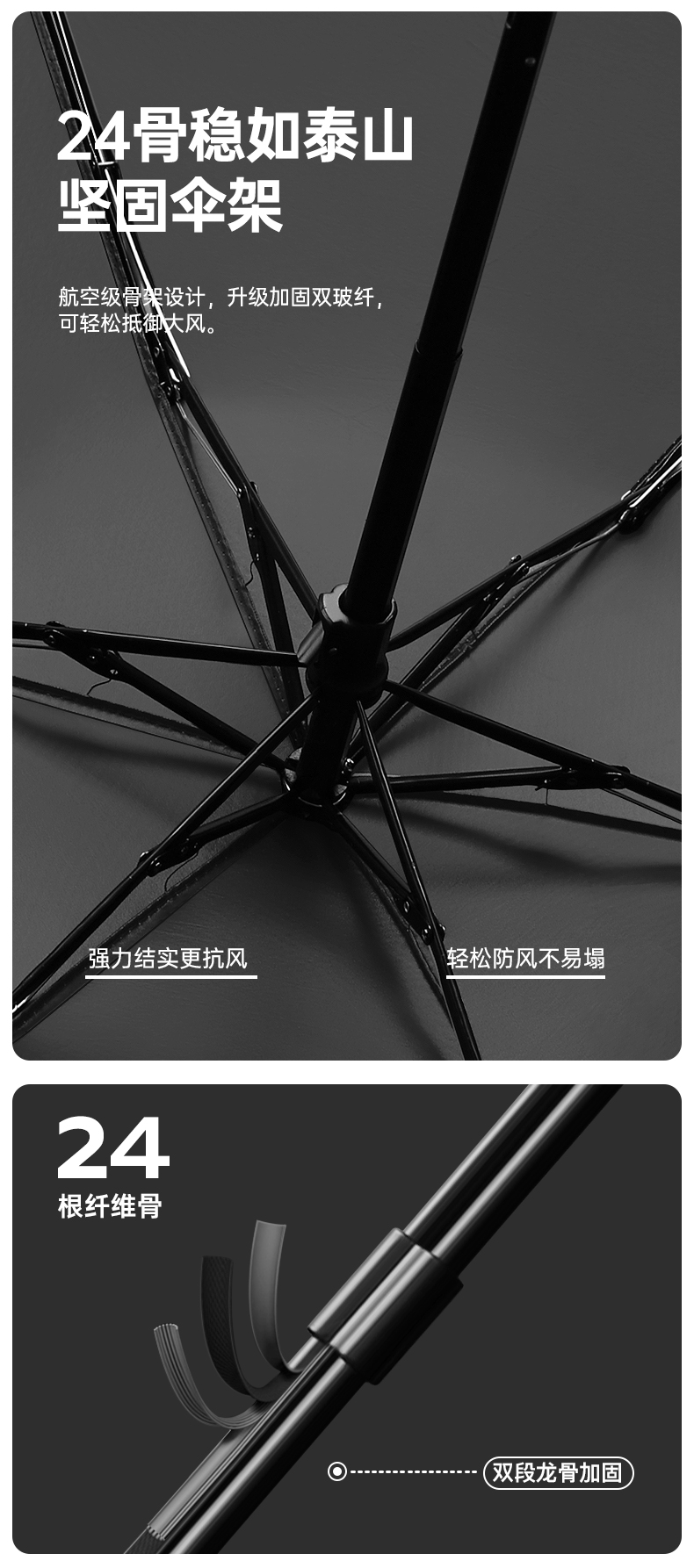【骨架】:19寸x6k五節(jié)鐵中棒纖維傘