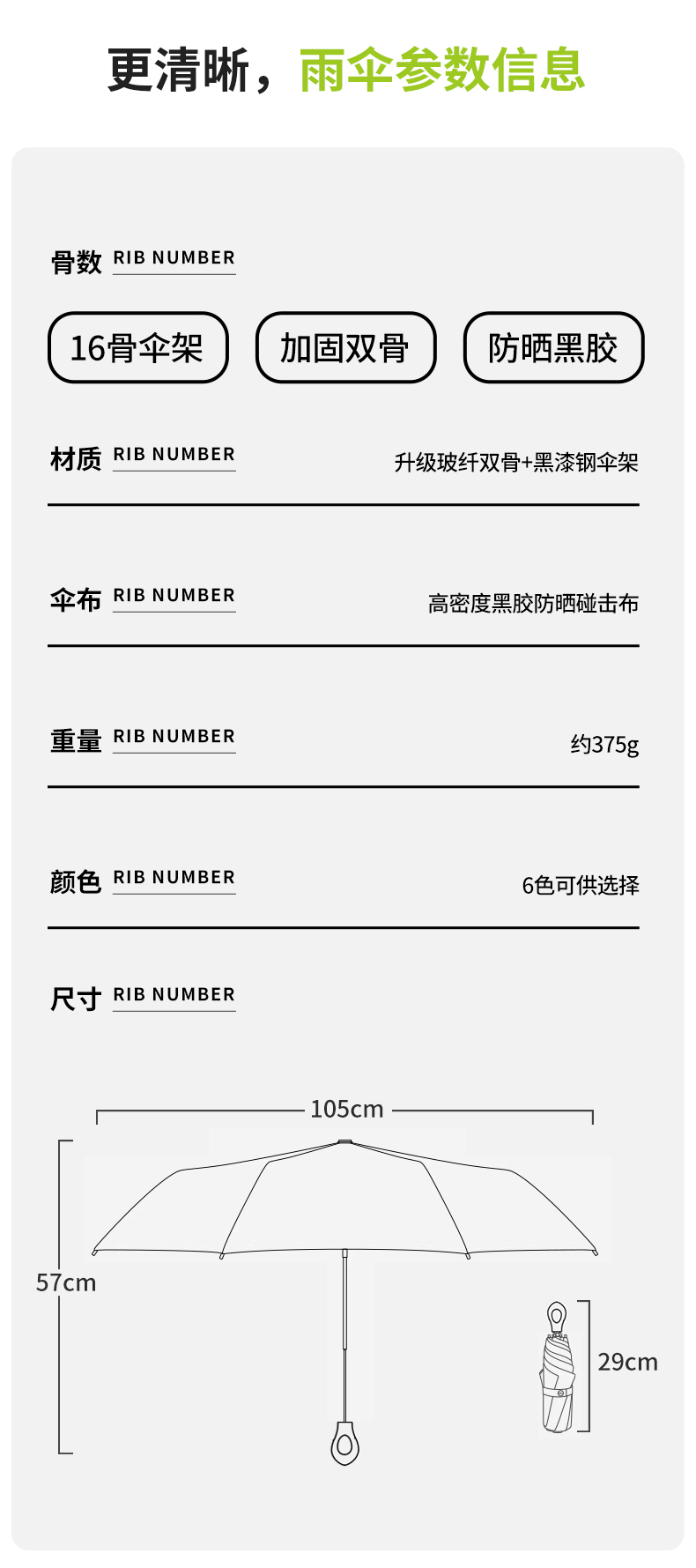 【骨架】:21寸x8kx16骨三節(jié)全自動開收傘