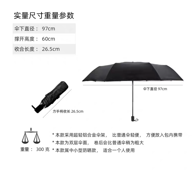 【布料】:190T PG銀膠布(真雙層傘面)