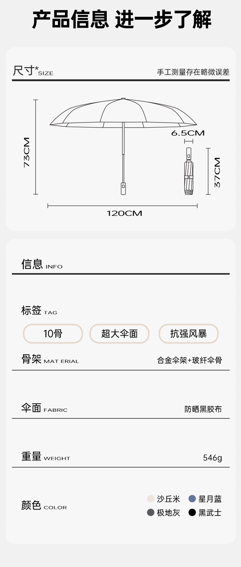 【布料】:210T噴織布黑膠防紫外線