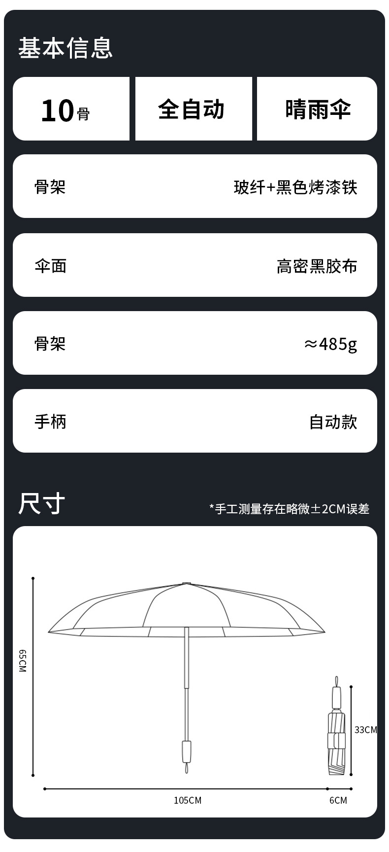 【布料】:190T噴織布黑膠防紫外線